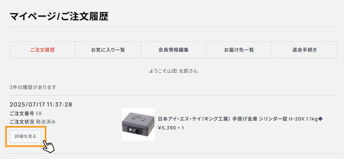 「マイページ/ご注文履歴」に表示されている、該当のご注文にある「詳細を見る」を選択します。